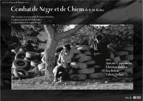 2002: Réalisation de l’affiche pour le spectacle « Combat de nègre et de chiens » de Bernard-Marie Koltès, présentée au 3 Bis F, à Aix-en-Provence, en avril 2002.