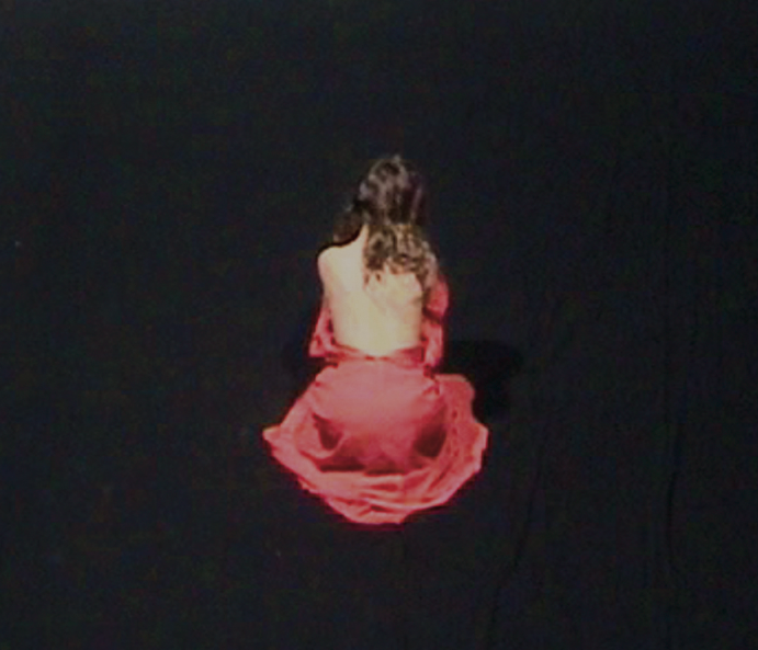 Ces deux video de « jeunes filles en fleur » ou « femmes-fleurs » sont données à voir à l’intérieur de jarres de jardin, recouvertes de terre, ne laissant apparaître que les écrans. Est-ce un jardin secret qui se dévoile à nous ? où assiste-t-on nous peu à peu à l’éclosion d’une fleur blanche et d’une rouge ? Le langage des fleurs définit le blanc incarne la pureté, la virginité, mais aussi le raffinement et l’élégance. Les fleurs blanches sont parfaites pour exprimer l’admiration que l’on ressent envers quelqu’un. Ici, on admire la nature à la fois humaine et la Nature elle-même, mais ne sommes-nous pas tous des créatures de la Nature. En effet, le blanc dans sa pureté évoque la perfection. Le rouge, quant à lui, est une couleur plus violente (celle qui excite le taureau dans l’arène) et exprime l’ardeur et la chaleur des sentiments, la passion. Mais, le rouge donne aussi du courage et s’utilise pour faire une déclaration passionnée. Une fois les corps dénudés, les robes sont comme flétries et se « re-cyclent » à nouveau dans un processus de lecture d’images à l’envers.