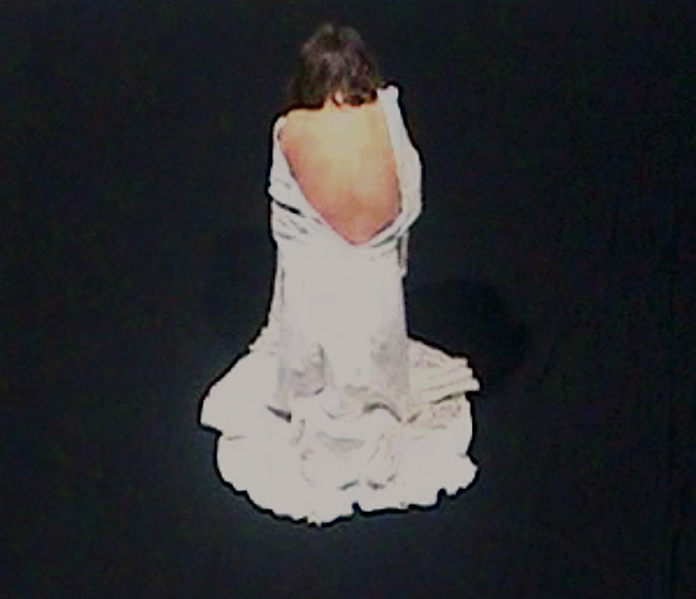 This installation refers to the flowers called cyclamens, and pays tribute to femininity and the natural life cycles. Both videos of « flower girls » or « flower women » are given to see inside garden jars, covered with earth, leaving only the screens visible. Is it a secret garden that is unveiling to us? Or do we attend gradually to the emergence of a white and a red flowers? The language of flowers defines the white, represents purity, virginity, but also refinement and elegance. White flowers are perfect for expressing the admiration we feel towards someone. Here we admire human nature as well as Nature itself, but aren’t we all creatures of Nature? Indeed, white in its purity evokes perfection. Red, meanwhile, is a more violent colour (the one which excites the bull in the arena) and expresses fervour and warmth of feelings, passion. But red also gives courage and is used to make a passionate statement. When bodies get naked, the dresses are like withered and are « re-cycled » again in an inverted image reading process.