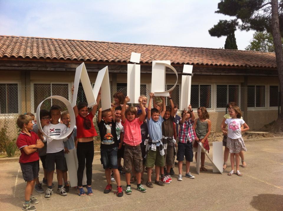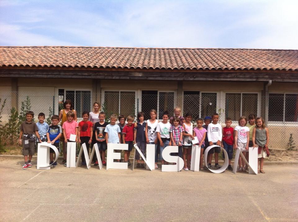 En parallèle de ce film d’animation, la classe construit actuellement le mot DIMENSION, grandeur nature. Ce mot contient les lettres du mot MIDI. Les lettres pourront être ainsi déplacées et mélangées. (travail en cours)