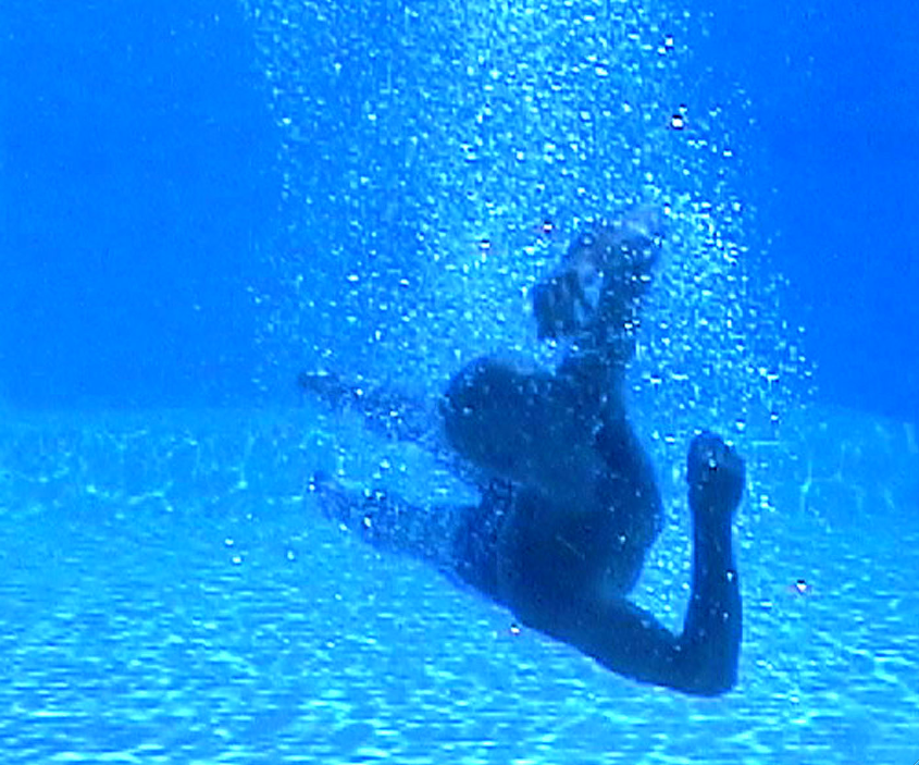 Atop a mound plant, who wants to see must pay one’s water mite. And then through water, disturbing images appear, suggesting the utopia of an underwater life, the fusion of the human body and the vegetable world, from solid to liquid … Visions creeping on the border of kingdoms and elements, where man dreams as an organic extension of the Nature itself. Water as any symbol corresponds to two opposite planes, water source of life, as well as death, creator and destructor. These images are taken from the video.