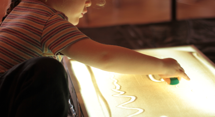Dessins de sable sur table lumineuse proposés dans le département de l’Hérault.