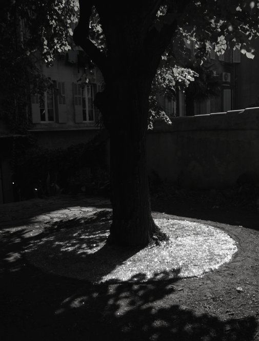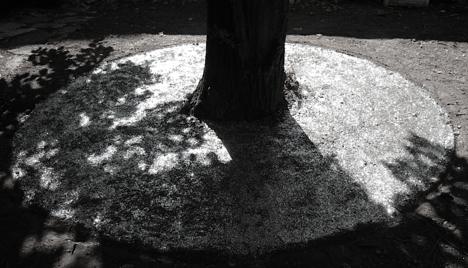 Ici, on assiste plutôt à une fête silencieuse, aux allures de méditation. Notre regard plus profond se pose sur ce que révèle cette poussière lumineuse, éclatante aux rayons du soleil. Cette oeuvre renvoie au vertige de la vie, à la rencontre de l’invisible et du visible. Une référence à un équilibre fragile du monde qui nous tient la tête hors de l’eau… La nature est ma source d’inspiration première. Je joue avec la dimension artificielle de la matière que j’utilise, son apparence, qui est trompeuse comme un leurre et semble provenir de la nature, de la la terre, voire d’une autre planète. Ainsi, le jeu des faux-semblants ouvre une infinité de portes.